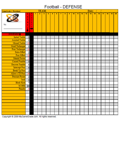 GameGrade Worksheet- Soccer