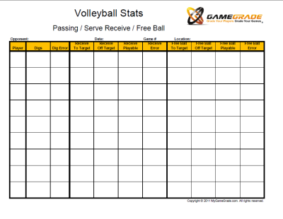 Volleyball Statsheet- Pass/Serve/Receive/Freeball