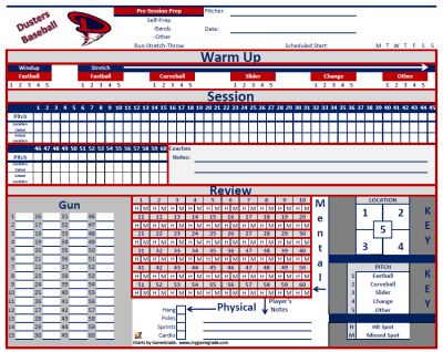 Customized Baseball/Softball Pitching Charts