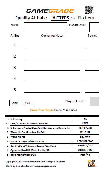 GameGrade Quality At-Bats 8 1/2 x 14 Chart(Hitters)