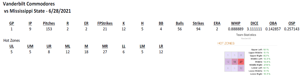 Download the Full GameGrade Pitching Report Here: Mississippi State vs Vanderbilt 6/28/21