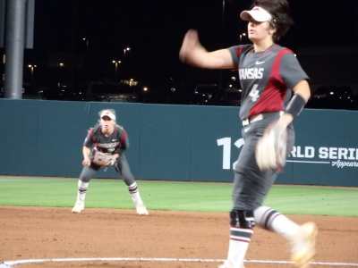 The 6' 1 Junior from Arlington, Texas tossed her fastball side to side and added touches of offspeed with her screwball and curve.