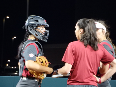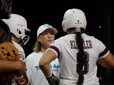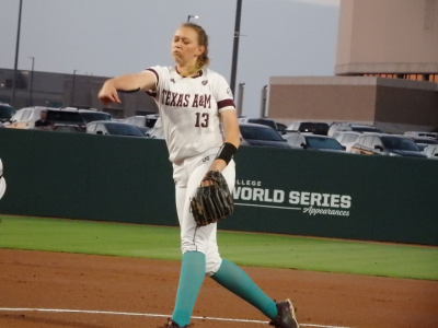 College Station, TX-- A&M's Kendall Potts took command in the circle against the #18 Razorbacks from the get-go.