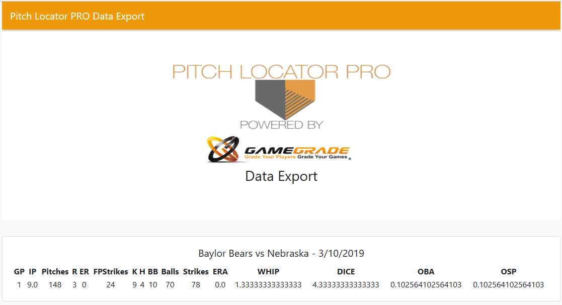 *Not official data. Data from the PL PRO Export is gathered by coaches/staff of GameGrade.